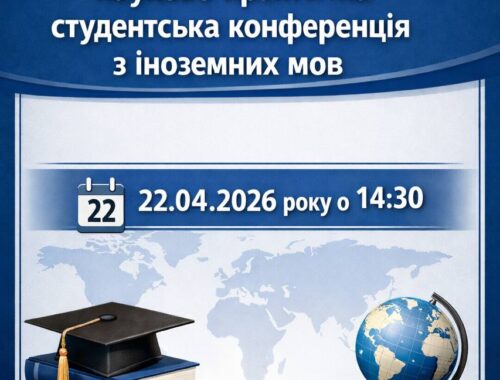 Шановні друзі! Запрошуємо студентів, аспірантів і викладачів до участі у щорічній університетській науково-практичній студентській конференції з іноземних мов, яка відбудеться онлайн 22 квітня 2026 року о 14:30. Тематичні напрями презентацій на конференції охоплюють наступні галузі: – Технічні науки – Архітектура…