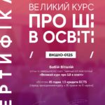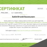 Курс підвищення кваліфікації “Великий курс про ШІ в освіті”, обсягом 45 годин (1,5 кредиту ЄКТС), період проходження курсу з 27 травня по 9 червня 2025 р. Сертифікат ВКШІО-0125.