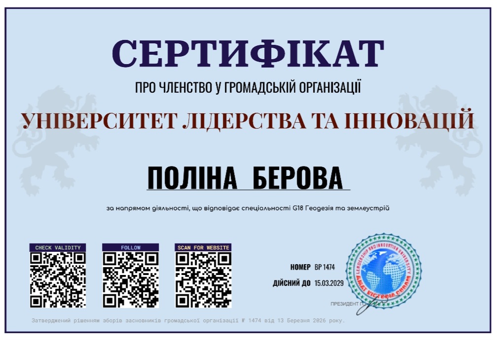 Член громадської організації «Університет лідерства та інновацій»